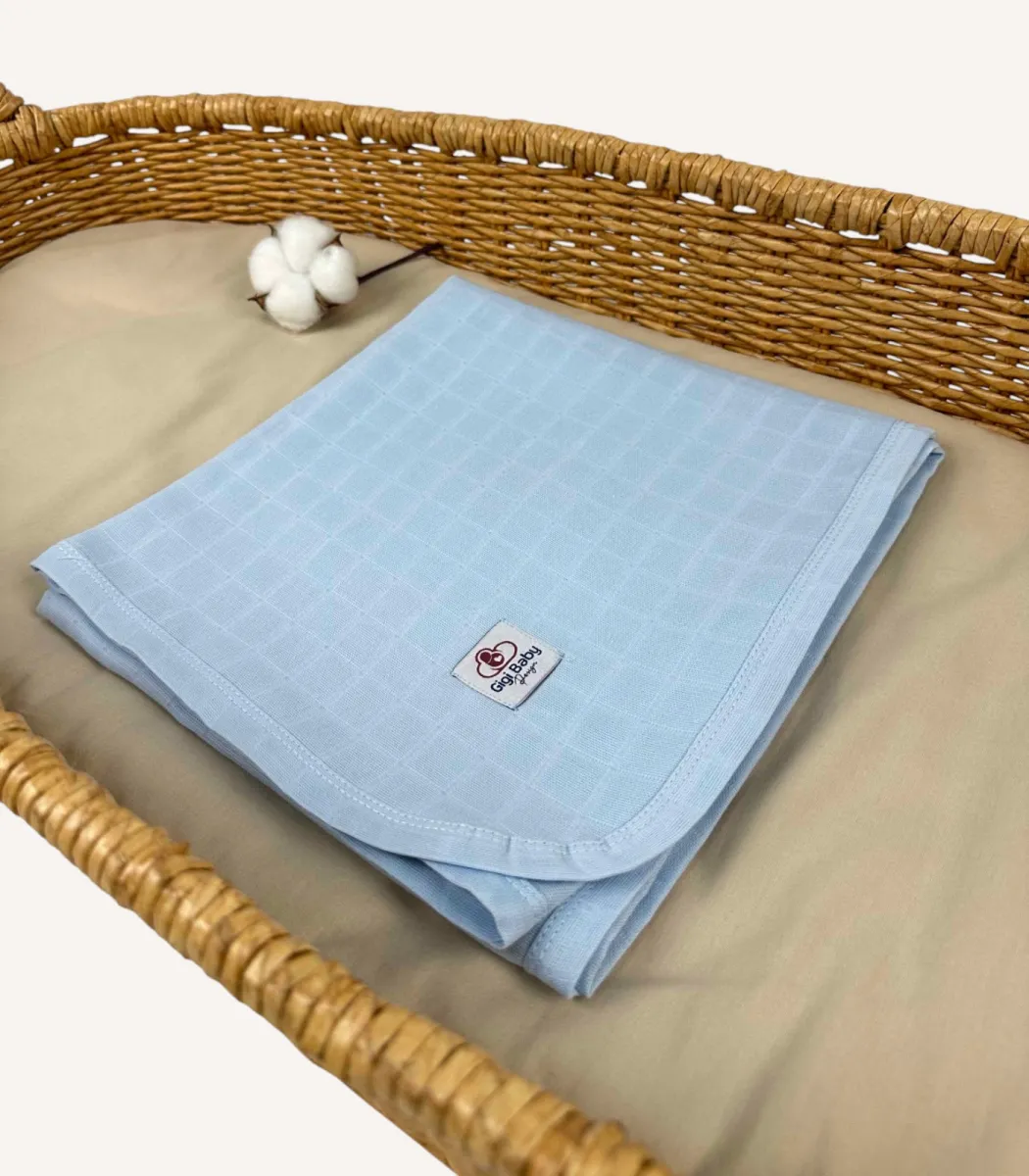 Kişiye Özel %100 Pamuk Tek Kat Bebek Mavisi Müslin Bebek Battaniyesi | Yumuşak, Hafif ve Zamansız Bir Tasarım