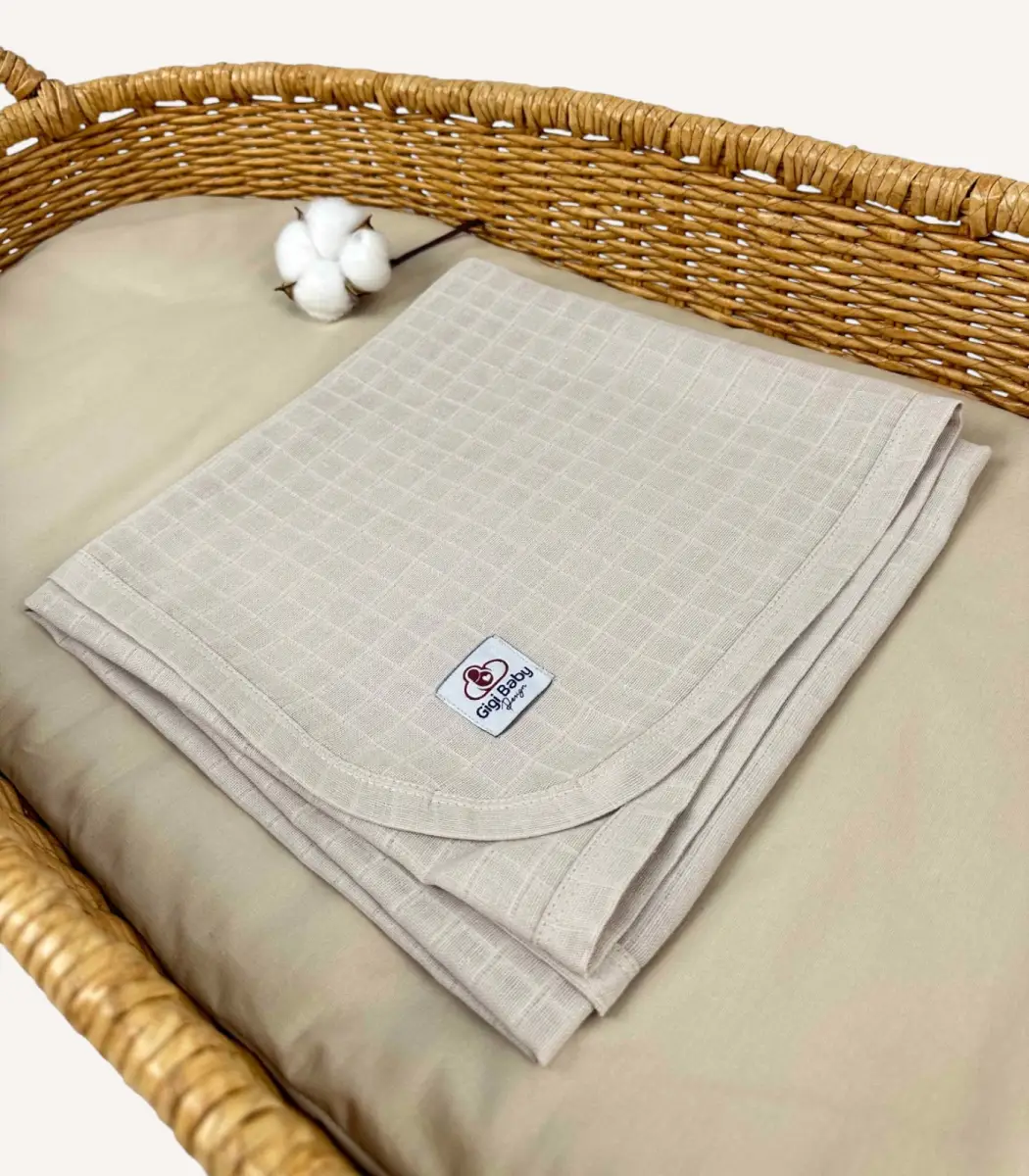 Kişiye Özel %100 Pamuk Tek Kat Bej Müslin Bebek Battaniyesi | Minimal, Yumuşak ve Zamansız Bir Tasarım