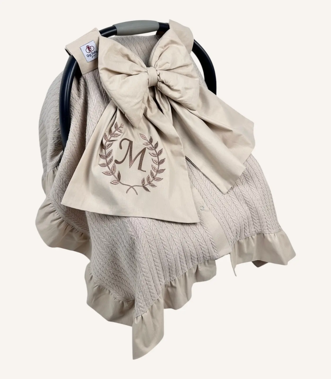 Ürün üzerine isim veya monogram nakışı ekleyebilirsiniz. Yazı tipi, nakış rengi ve isteğe bağlı desen seçeneklerini sipariş sırasında siz belirlersiniz. Böylece ürünü tamamen size özel hâle getirirsiniz.