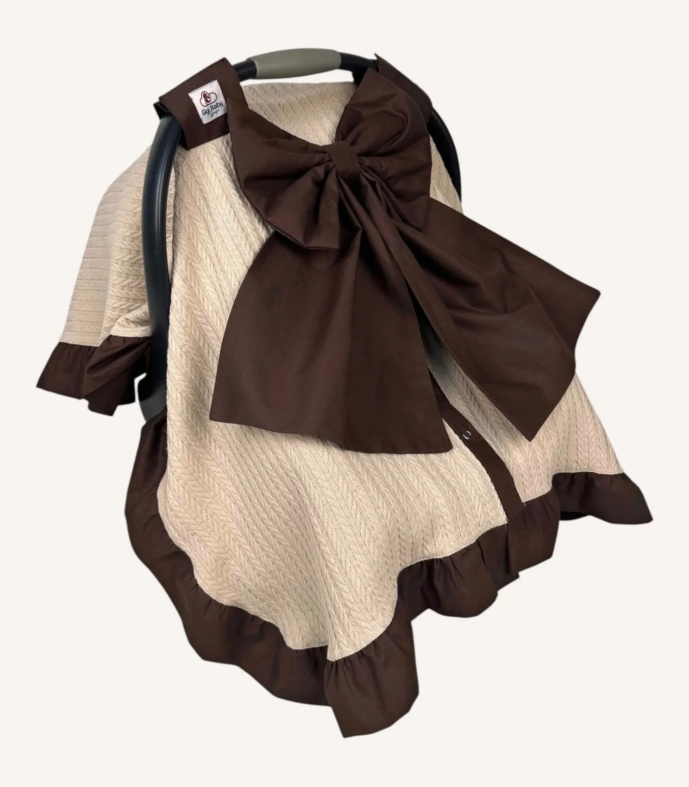 Bej örgü pike puset örtüsü kahverengi fiyonk detayıyla sıcak ve dengeli bir stil sunar. Aynı zamanda koruyucu yapısı sayesinde günlük kullanımda konfor sağlar. Böylece hem estetik hem işlevsel bir tercih elde edersiniz.