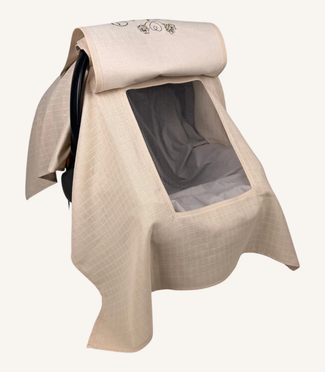 Bej Tek Kat Müslin Kapaklı Puset Örtüsü, bebeğinizi güneşten, meraklı bakışlardan ve uçan haşerelerden korumak amacıyla tasarlanmıştır. Tek kat müslin kumaşı sayesinde oldukça hafif ve ferah bir kullanım sunar. Bej rengin doğal ve nötr tonu, pusete sade ve zamansız bir görünüm kazandırır.