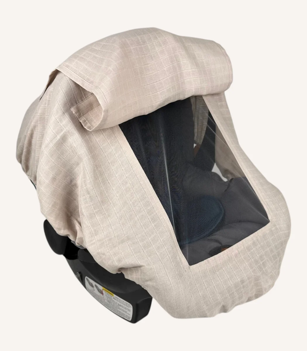 Bej Tek Kat Müslin Lastikli Kapaklı Puset Örtüsü