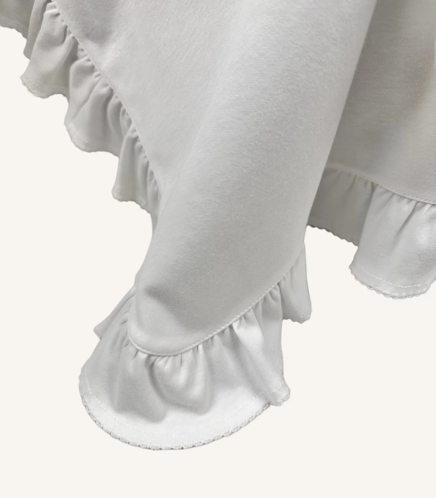 Ekru GOTS Sertifikalı %100 Organik Pamuk Fırfır Kenarları Kroşe Detaylı Puset Örtüsü