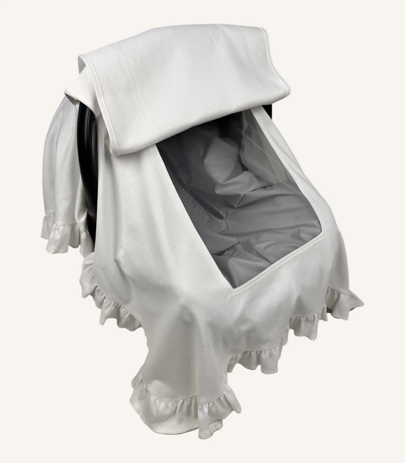 Ekru GOTS Sertifikalı %100 Organik Pamuk Kroşe Detaylı Fırfırlı Kapaklı Puset Örtüsü