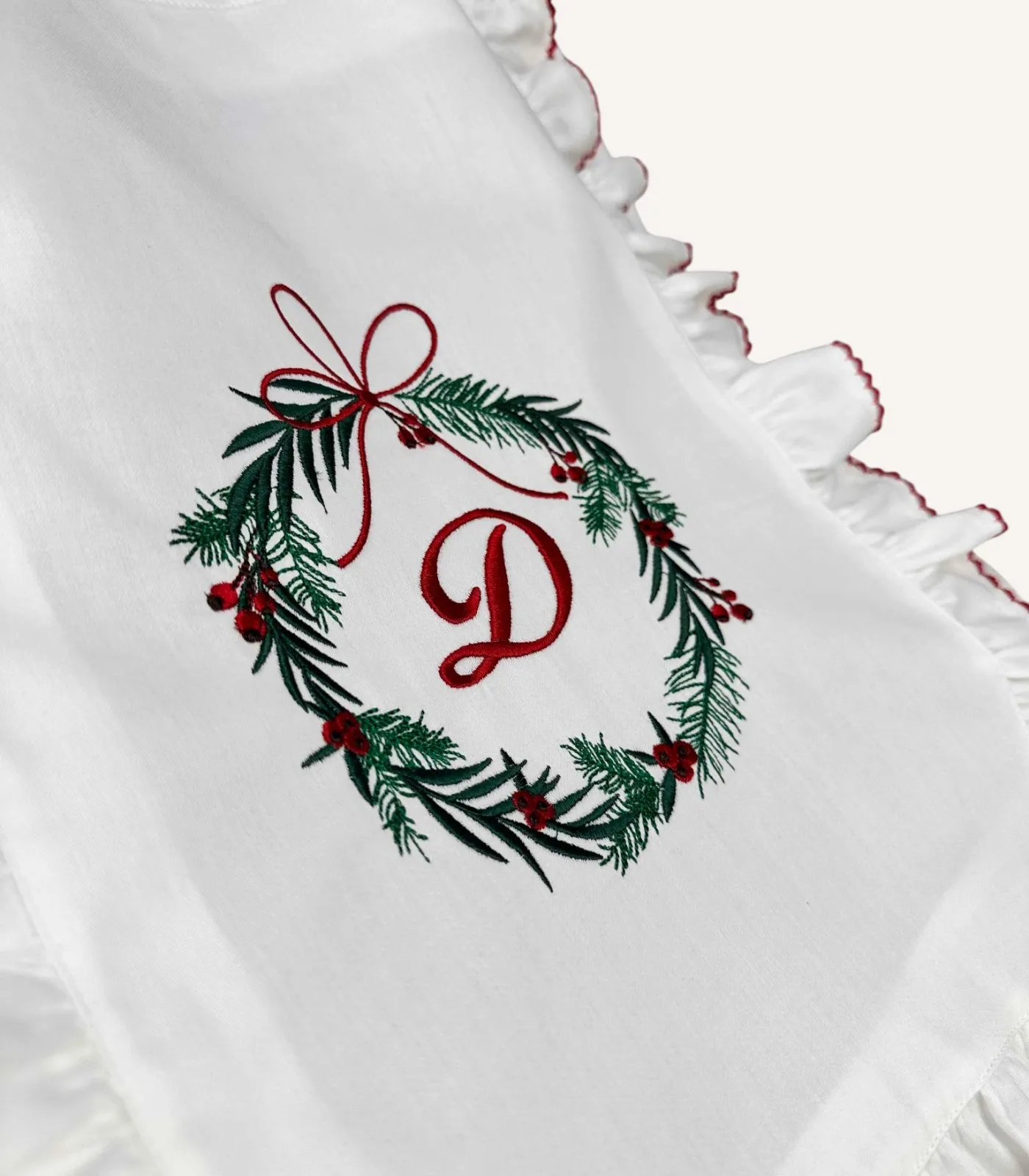 Kişiye Özel Ekru Pamuk Saten Puset Örtüsü | Çift Fırfırlı, Kroşe İşlemeli ve Şık Tasarım
