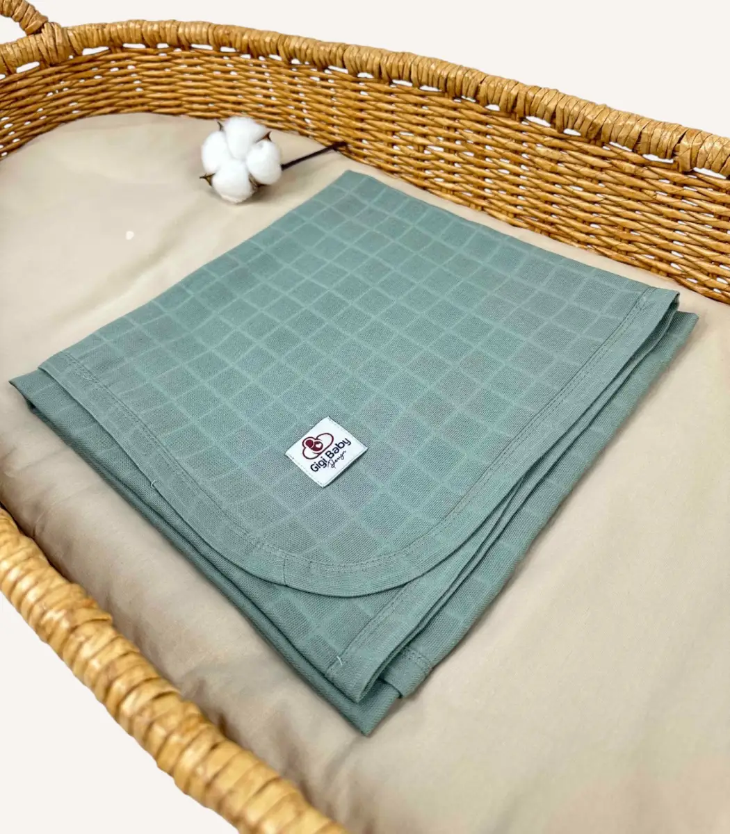 Kişiye Özel %100 Pamuk Tek Kat Haki Müslin Bebek Battaniyesi | Doğal, Minimal ve Zamansız Bir Tasarım