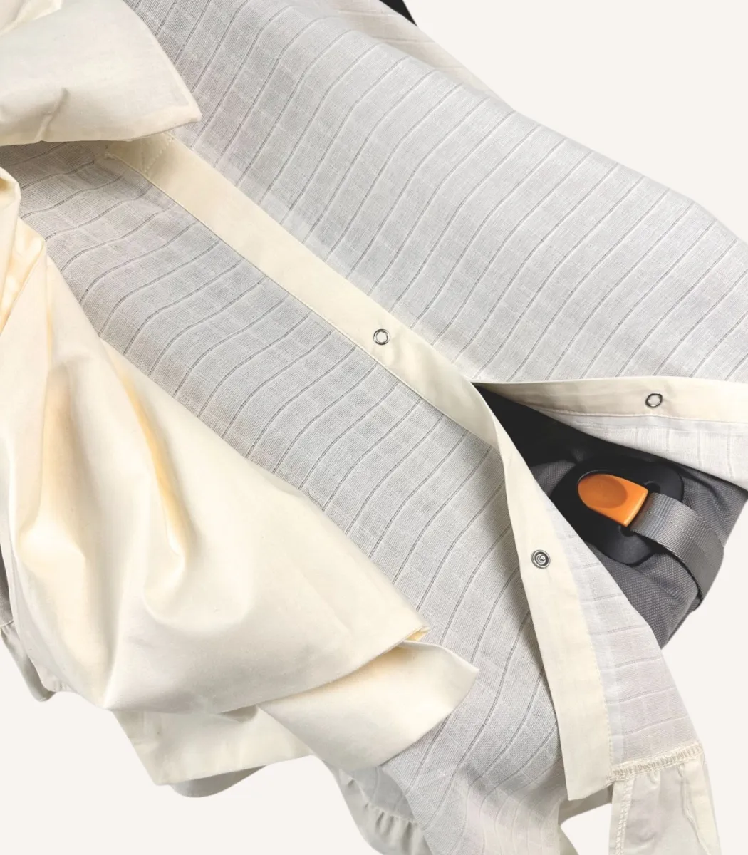 Tek kat müslin kumaş ince ve hafif yapısıyla öne çıkar. Ayrıca yüksek hava geçirgenliği sayesinde içerideki havayı dengeler. Böylece sıcak havalarda ferah bir kullanım sağlarsınız ve puset içinde bunaltıcı bir ortam oluşmaz.