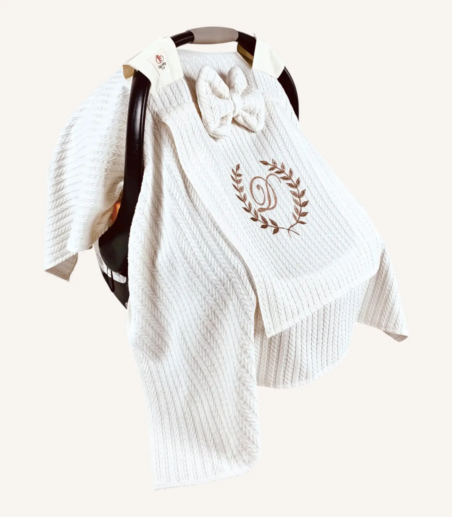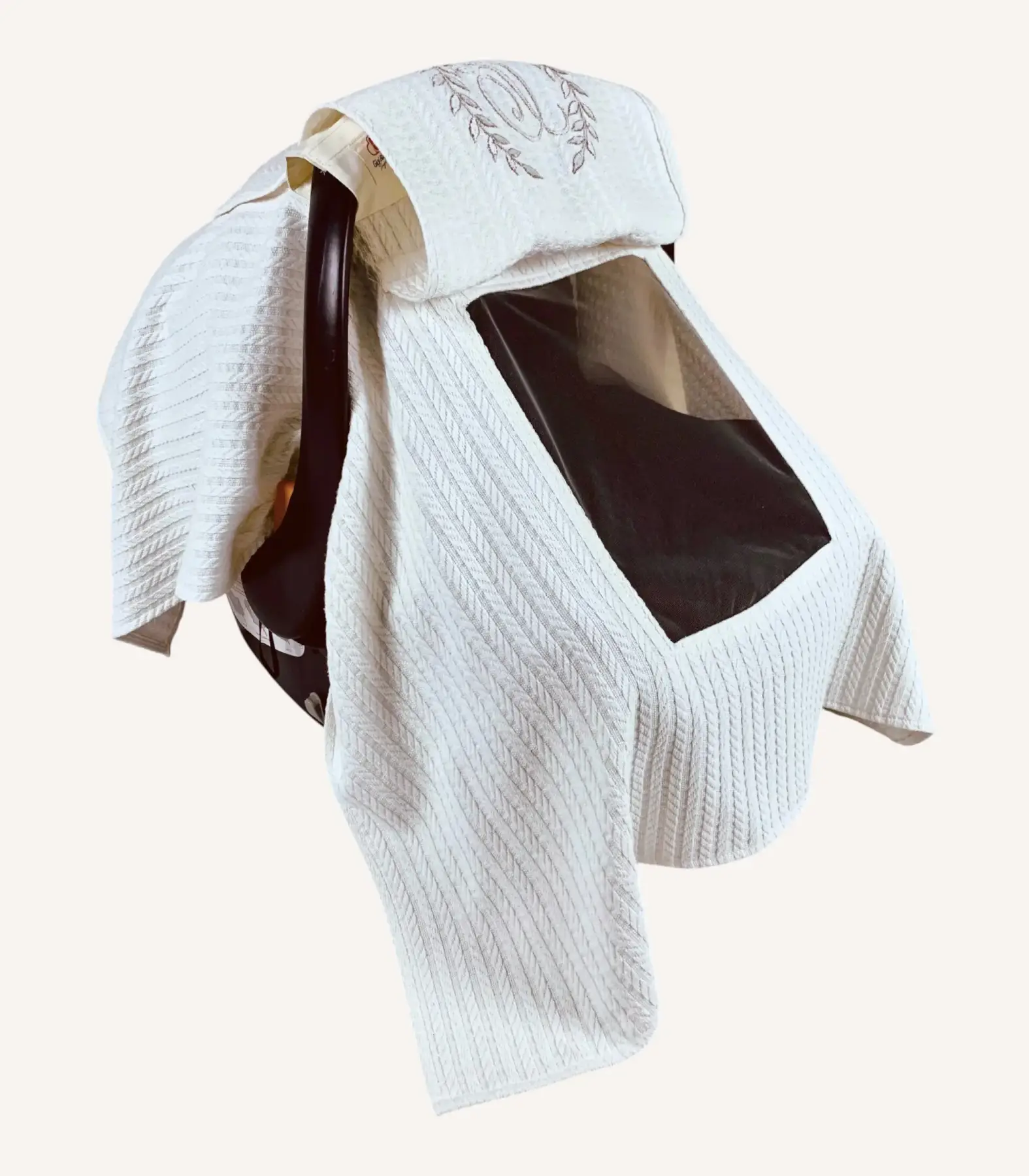 Krem örgü pike kapaklı puset örtüsü, sade görünümü ve fonksiyonel detaylarıyla günlük puset kullanımını daha konforlu hâle getirir.