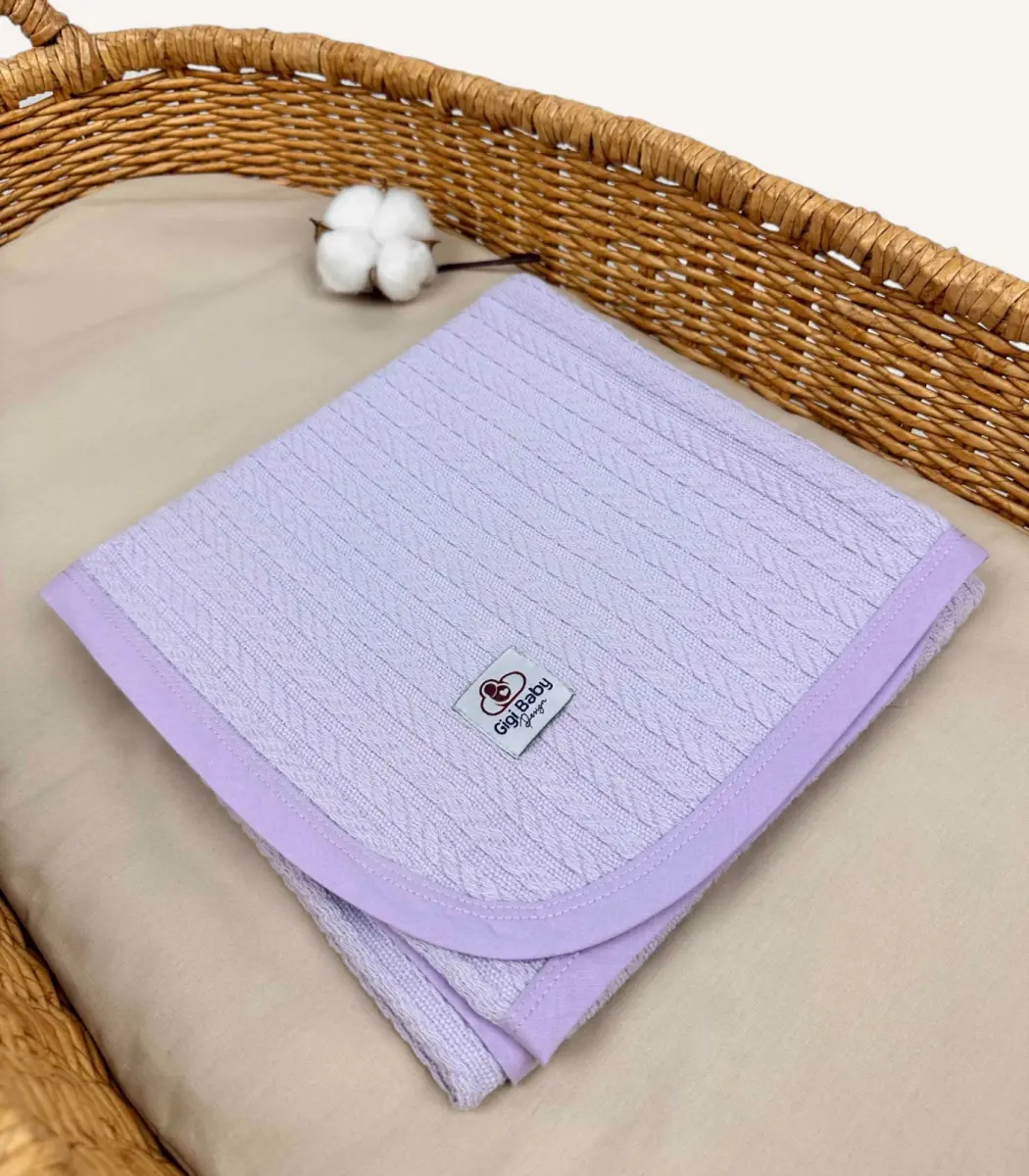 Lila Örgü Pike Kumaştan Biyeli Kişiselleştirilebilir Bebek Battaniyesi
