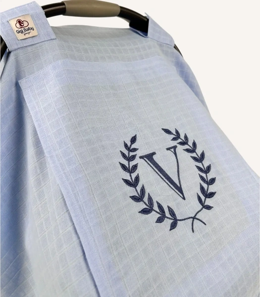 Mavi tek kat müslin kapaklı puset örtüsü, hafif ve nefes alabilen pamuk yapısıyla bebeğinizi güneşten ve dış etkenlerden korur.