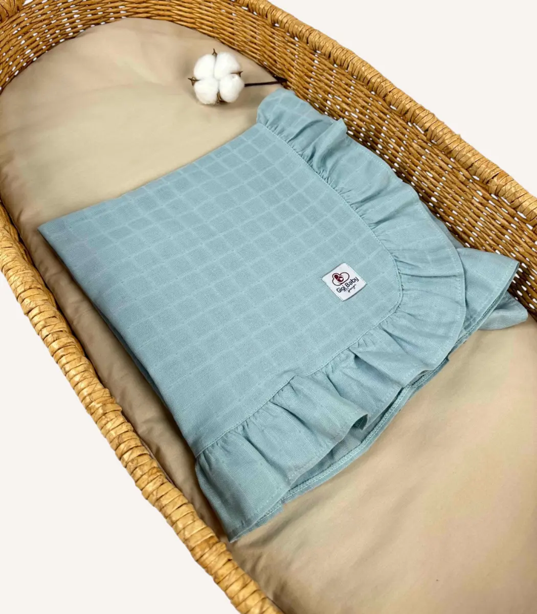 Mint Tek Kat Müslin Kumaştan Fırfırlı Kişiselleştirilebilir Bebek Battaniyesi