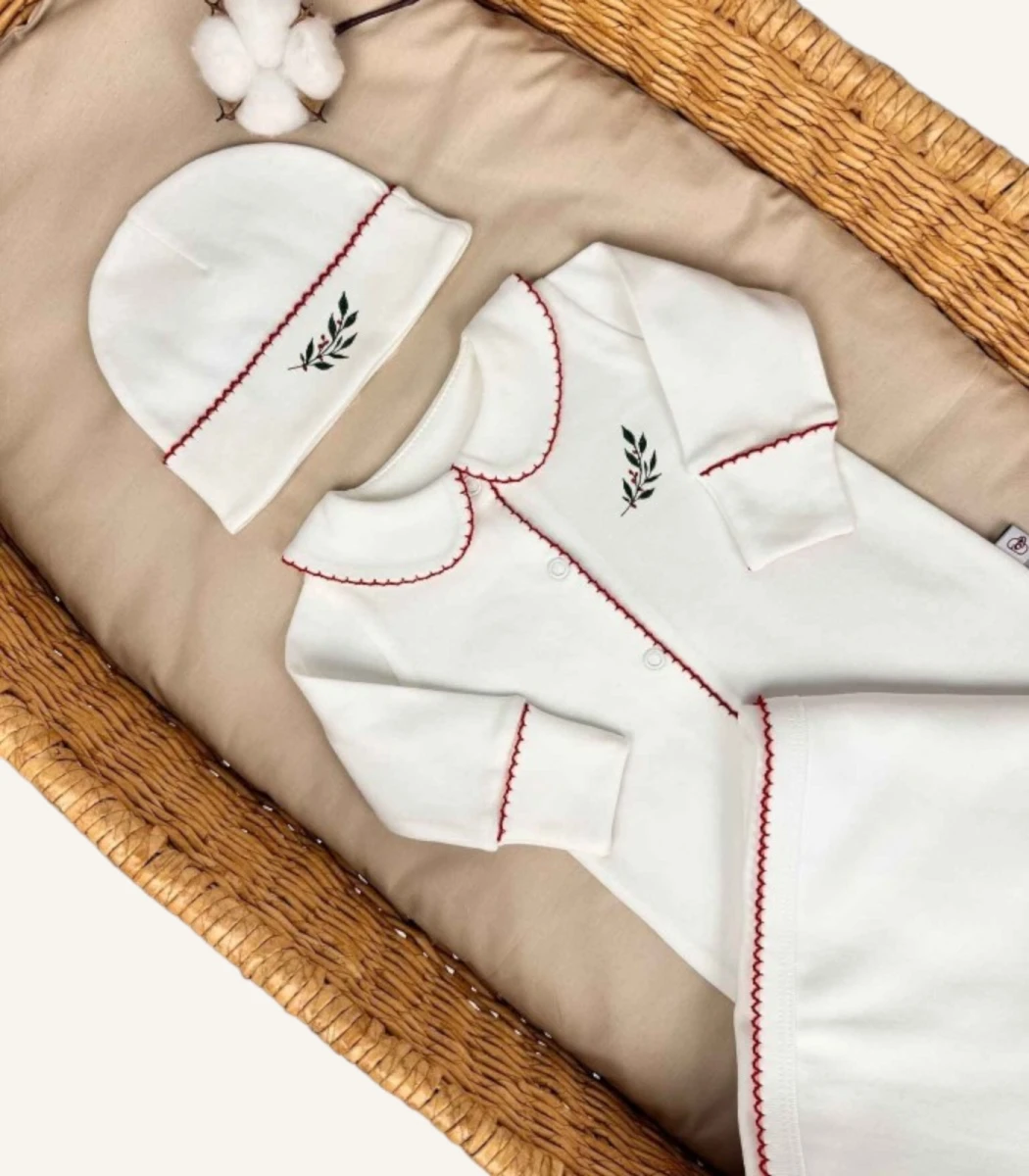 Organik hastane çıkış seti – 4’lü, sade tasarımı ve kişiselleştirilebilir nakış detaylarıyla hem günlük kullanım hem de özel anlar için ideal bir seçim sunar. Aynı zamanda yeni doğan hediyesi olarak zarif ve zamansız bir alternatif oluşturur.