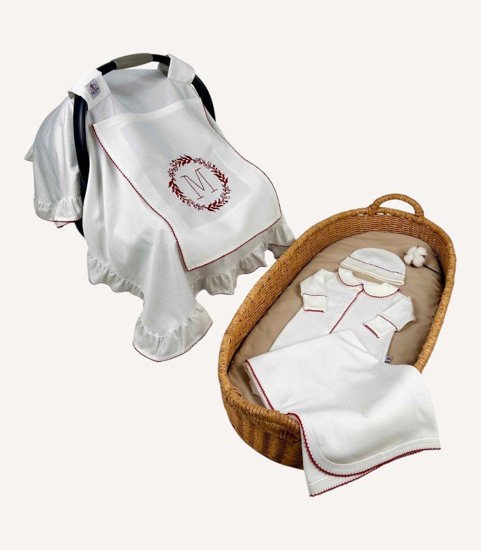 Puset örtüsü, tulum, şapka ve battaniye üzerine isim veya monogram işliyoruz. Üstelik 4 parçaya kadar nakışı hediye olarak sunuyoruz. Sipariş sırasında yazı tipi, nakış rengi ve tasarım (desen) seçimini belirleyerek seti tamamen bebeğinize özel hâle getirebilirsiniz. Böylece hem anlamlı hem de özel bir hatıra oluşturursunuz.