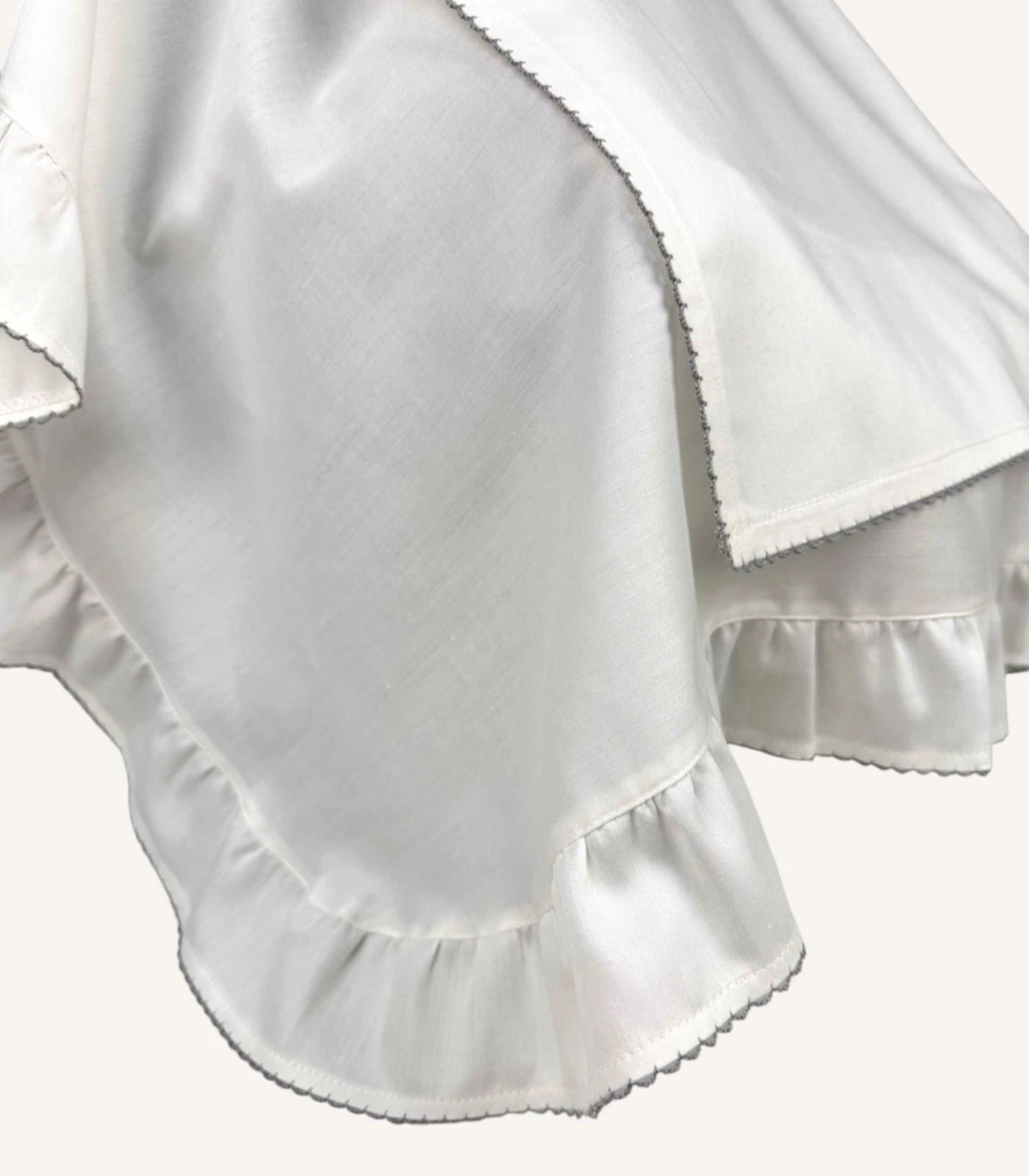 Sete dahil puset örtüsünü %100 pamuk saten kumaş kullanarak hazırlıyoruz. Yumuşak ve pürüzsüz yüzeyi bebeğiniz için konforlu bir kullanım sunar. Aynı zamanda kapak ve fırfır bölümlerinde yer alan kroşe işlemeler örtüye zarif bir görünüm kazandırır. Böylece hem estetik hem de işlevsel bir tasarım ortaya çıkar.