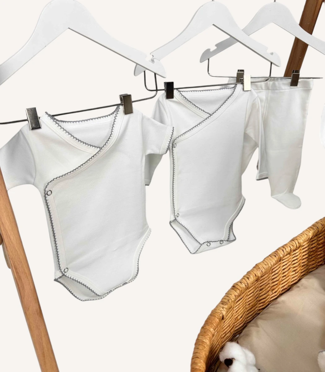 Setin 7 parçasını %100 organik pamuk interlok penye kumaş kullanarak hazırlıyoruz. Yumuşak dokusu bebeğinizin cildine nazikçe temas eder. Ayrıca nefes alabilir yapısı hava dolaşımını destekler. Böylece hassas yenidoğan cildi için güvenli ve rahat bir kullanım sunar.