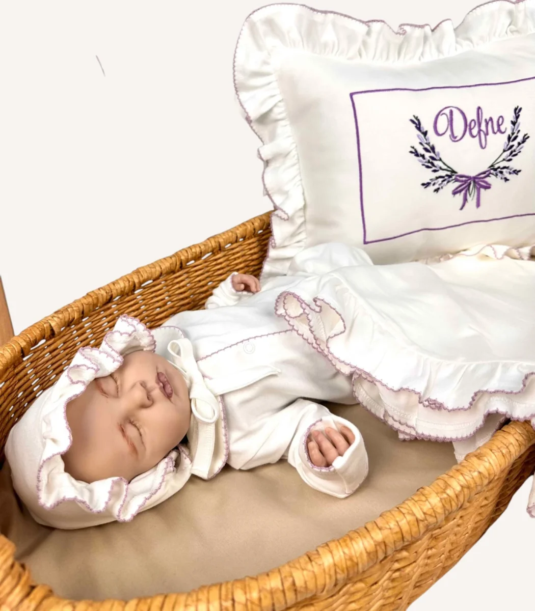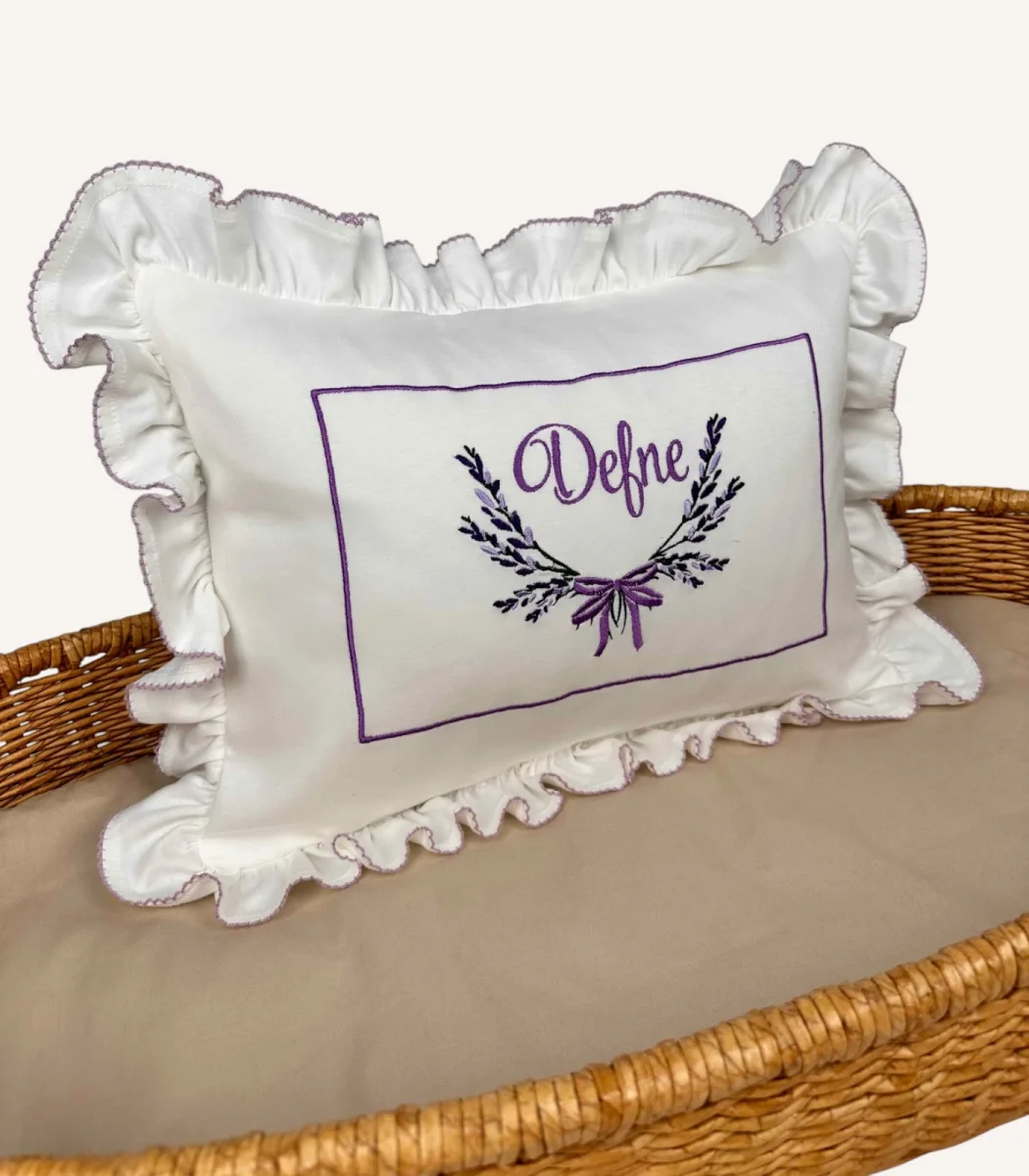 Dekoratif yastık, battaniye, tulum ve puset örtüsü üzerine isim veya monogram işliyoruz. Üstelik 4 parçaya kadar nakışı hediye olarak sunuyoruz. Sipariş sırasında yazı tipi, nakış rengi ve tasarım (desen) seçimini belirleyerek seti tamamen bebeğinize özel hâle getirebilirsiniz. Böylece hem anlamlı hem de özel bir hatıra oluşturursunuz.