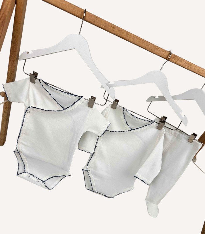 Organik hastane çıkış seti – 8’li, bebeğinizin ilk günlerinde ihtiyaç duyduğu konforu ve zarafeti bir araya getirir. %100 organik pamuk GOTS sertifikalı interlok penye kumaşla hazırladığımız 7 parçaya ek olarak, sete dahil ettiğimiz puset örtüsüyle birlikte tam bir başlangıç seti sunar. Ekru rengiyle sunulan seti prematüre ve 0–3 ay beden seçenekleriyle tercih edebilirsiniz. Ayrıca 4 parçaya kadar nakış hediyesiyle birlikte ürünleri ekstra ücret ödemeden kişiselleştirebilirsiniz.