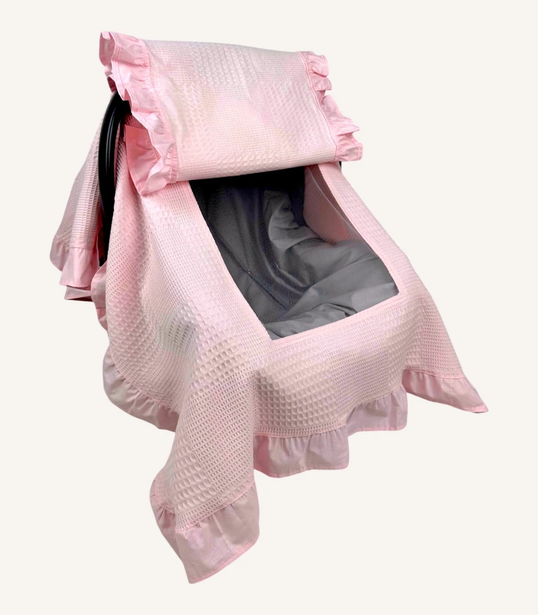 Pembe Dama Pike Fırfırlı Kapaklı Puset Örtüsü