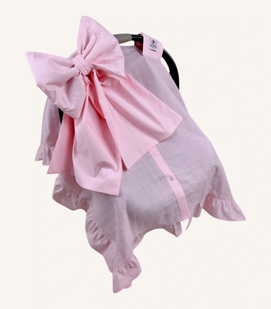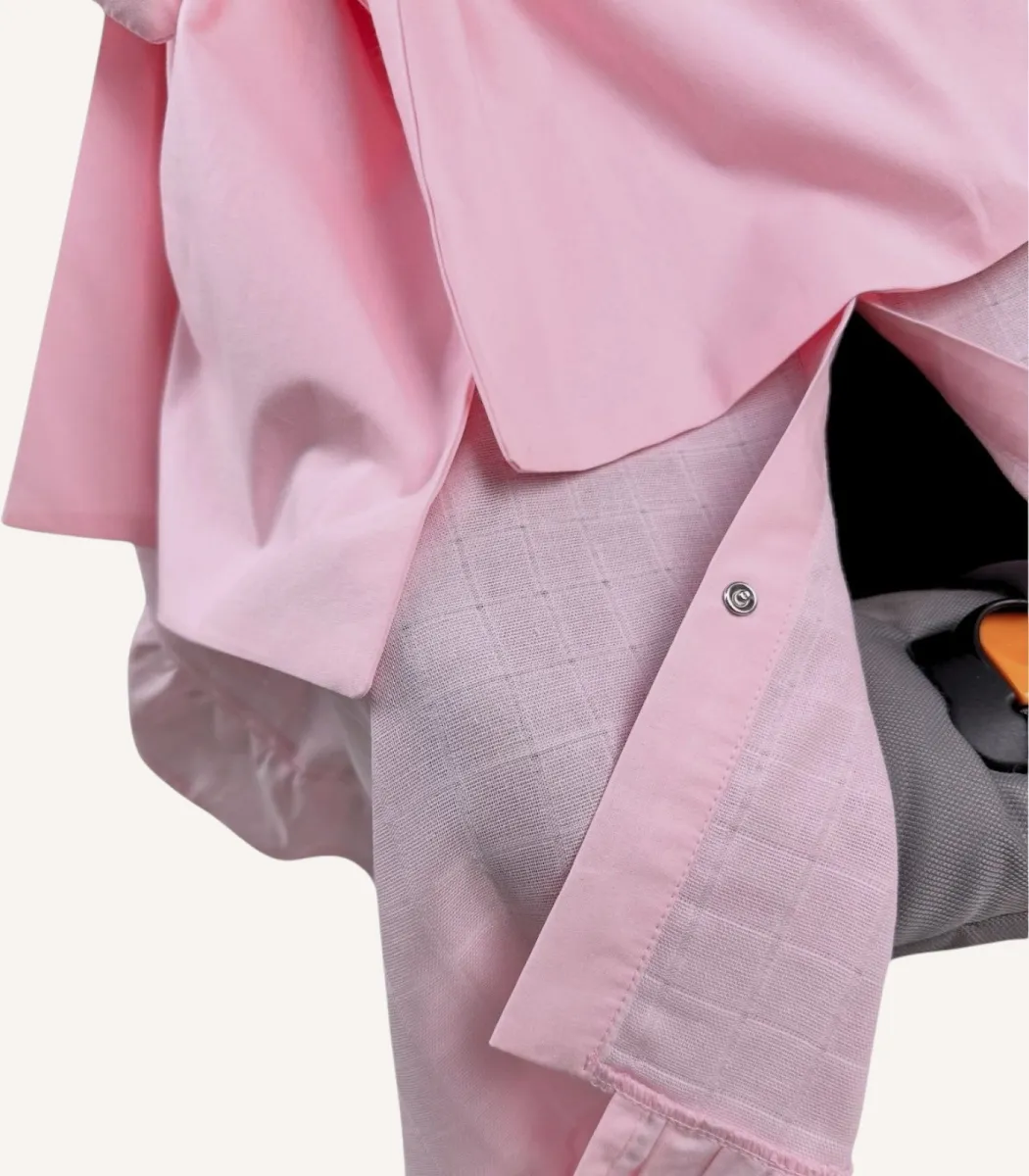 Pembe müslin fiyonklu yırtmaçlı puset örtüsü, hafif ve ince yapısıyla sıcak havalar için ideal bir puset örtüsü olarak öne çıkar. Ayrıca nefes alabilen tek kat %100 pamuk müslin kumaşı hava dolaşımını destekler, böylece puset içinde ferah bir ortam oluşur. Bununla birlikte örtü rüzgarı dengeler, güneş ışığını yumuşatır ve toz gibi dış etkenlerin etkisini azaltır. Aynı zamanda bebeğinizle doğrudan teması sınırlar ve daha korunaklı bir alan oluşturur. Böylece özellikle yaz aylarında ve mevsim geçişlerinde konforlu bir kullanım elde edersiniz.