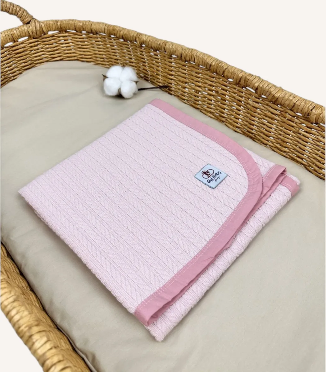 Kişiye Özel %100 Pamuk Pudra Pike Bebek Battaniyesi | Yumuşak, Zarif ve Minimal Tasarım