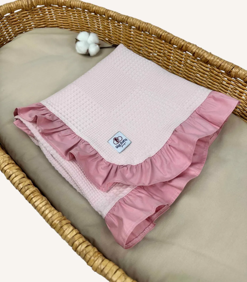 Pudra Dama Pike Kumaştan Fırfırlı Kişiselleştirilebilir Bebek Battaniyesi