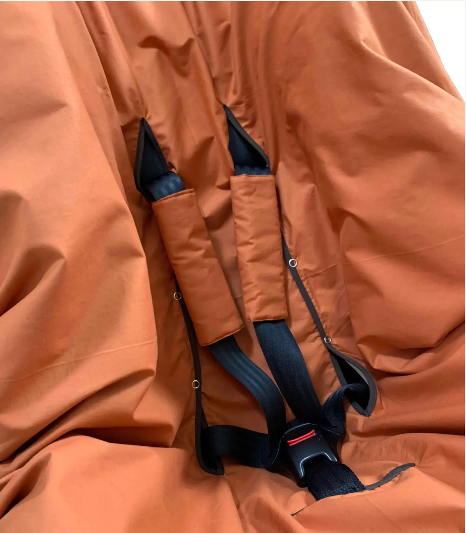 Kılıfı oto koltuğuna yerleştirir, kemerleri bu aralıklardan kolayca geçirir ve çıtçıtları kapatarak saniyeler içinde kullanıma hazır hâle getirirsiniz.